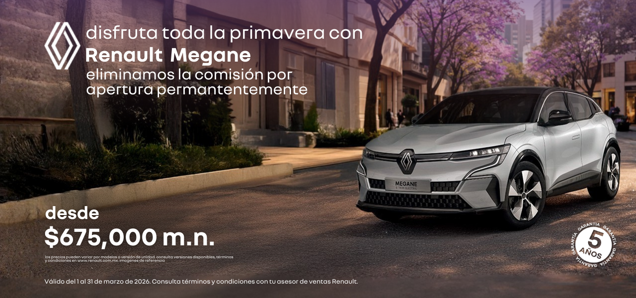 Esta primavera es el momento perfecto para conducir hacia algo diferente. Estrena tu Renault Megane desde $675,000 m.n. y aprovecha sin comisión por apertura, para que dar el siguiente paso sea más fácil que nunca. Diseño vanguardista, tecnología innovadora y una experiencia de manejo que transforma cada trayecto en algo extraordinario.