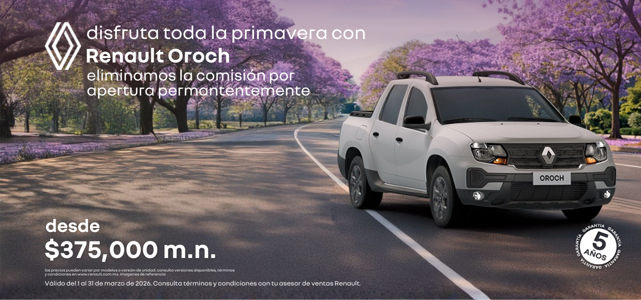 Esta primavera atrévete a hacer más, cargar más y llegar más lejos. Estrena tu Renault Oroch desde $375,000 m.n. y aprovecha sin comisión por apertura, para que tu inversión rinda desde el primer día. Potencia, versatilidad y espacio de carga listos para el trabajo, la aventura y todo lo que esta temporada traiga para ti.